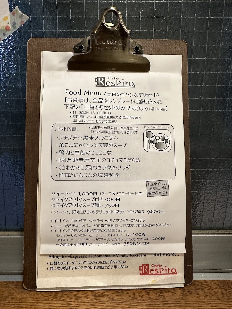 Welcome to Cafe Respiro, a charming little gem located in the heart of Tokyo's Chiyoda City. This cozy cafe captures the essence of a warm, inviting bistro, where each visit feels like a delightful escape. The menu here is a treat for both the palate and the soul, featuring a daily rotating selection of healthy meals and homemade delicacies that promise freshness with every bite.
